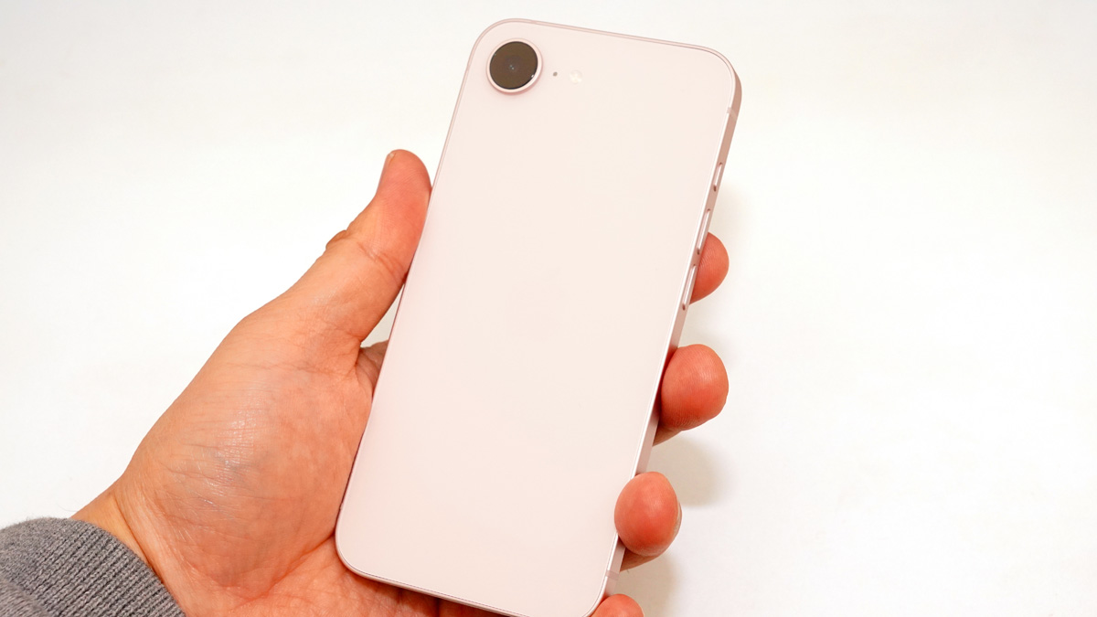 デザイン的には、カラーバリエーションに新色のソフトピンクが加わったことも新たなトピックと言えそうだ。ピンクと言っても“ソフト”とついているように、派手派手しい色ではなく、桜の花びらのような柔らかなトーン。サラッとしたガラスの背面とも相性がいい。白黒の2色展開だったiPhone 16eと比べ、選ぶ楽しみが増えたと言えそうだ。