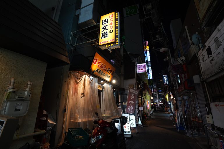 午後は広角ズームの「FE 16-35mm F2.8 GM II」に付け替え、小平氏と共に阿佐谷の街を歩いた。当日は天候に恵まれ、青空が美しく抜けている。聖地巡礼は風景だけでなく周囲の状況も描写したい。この広角ズーム1本で、作品の世界観を余すことなく切り取ることができた。強力な手ぶれ補正のおかげで、夜景でも三脚は不要だ。