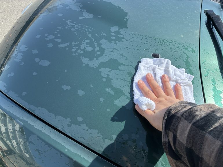 黄砂が付着すること自体は仕方ないとはいえ、水で軽く洗い流せば砂までサッと落ちる……というような状態にしておきたい。そのためには、ワックスがけは欠かせない。