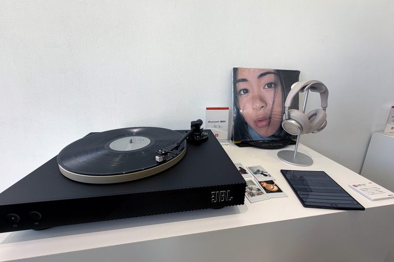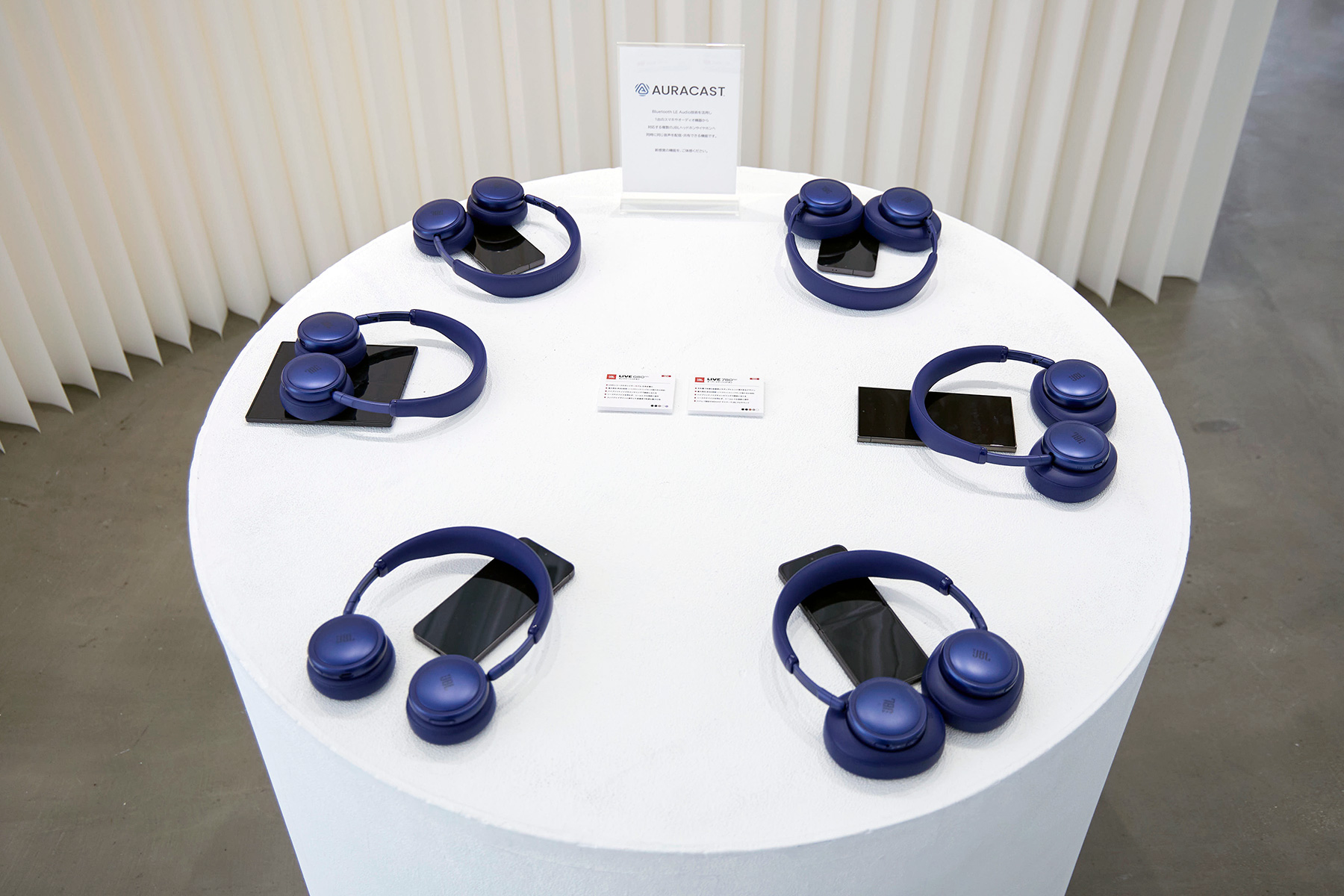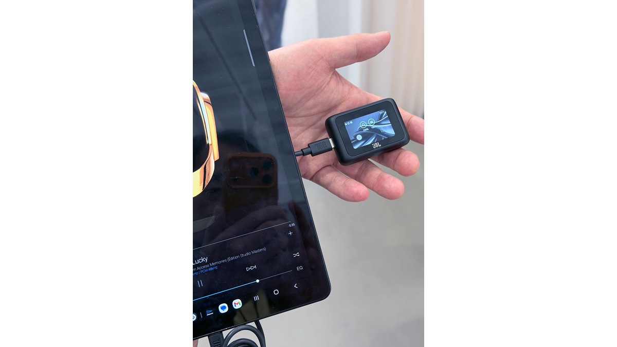 別売のトランスミッター「JBL Smart Tx」に対応。これを使ってAuracastのデモが行われた。複数のヘッドホンとBluetoothスピーカーにリアルタイムで同時配信が行われた