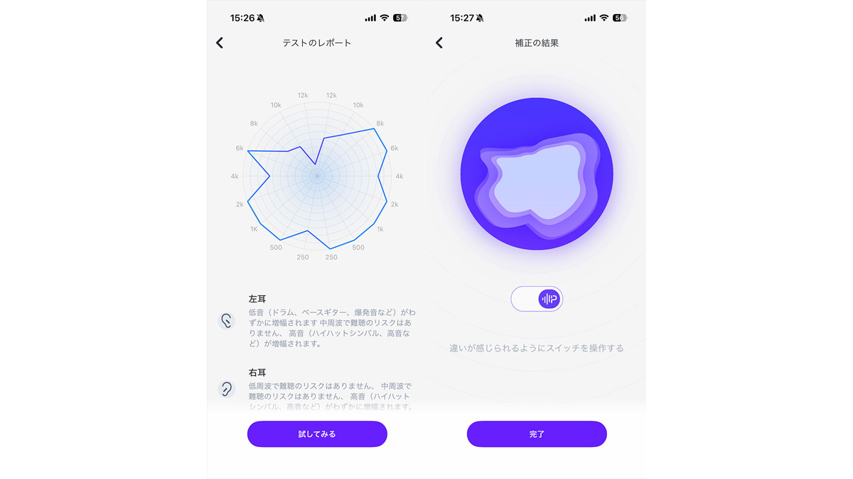 ●装着補正:髪の毛や帽子の隙間による音漏れを自動検知して補完する「リアルタイム補正」機能を備える。