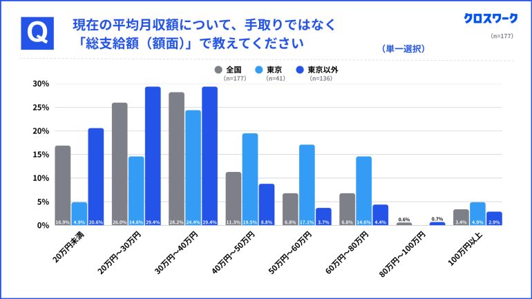 月収のボリュームゾーンは40万円以下、収入水準に差