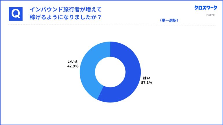 また、101名(57.1%)がインバウンド旅行者の増加によって「稼げるようになった」と回答している。