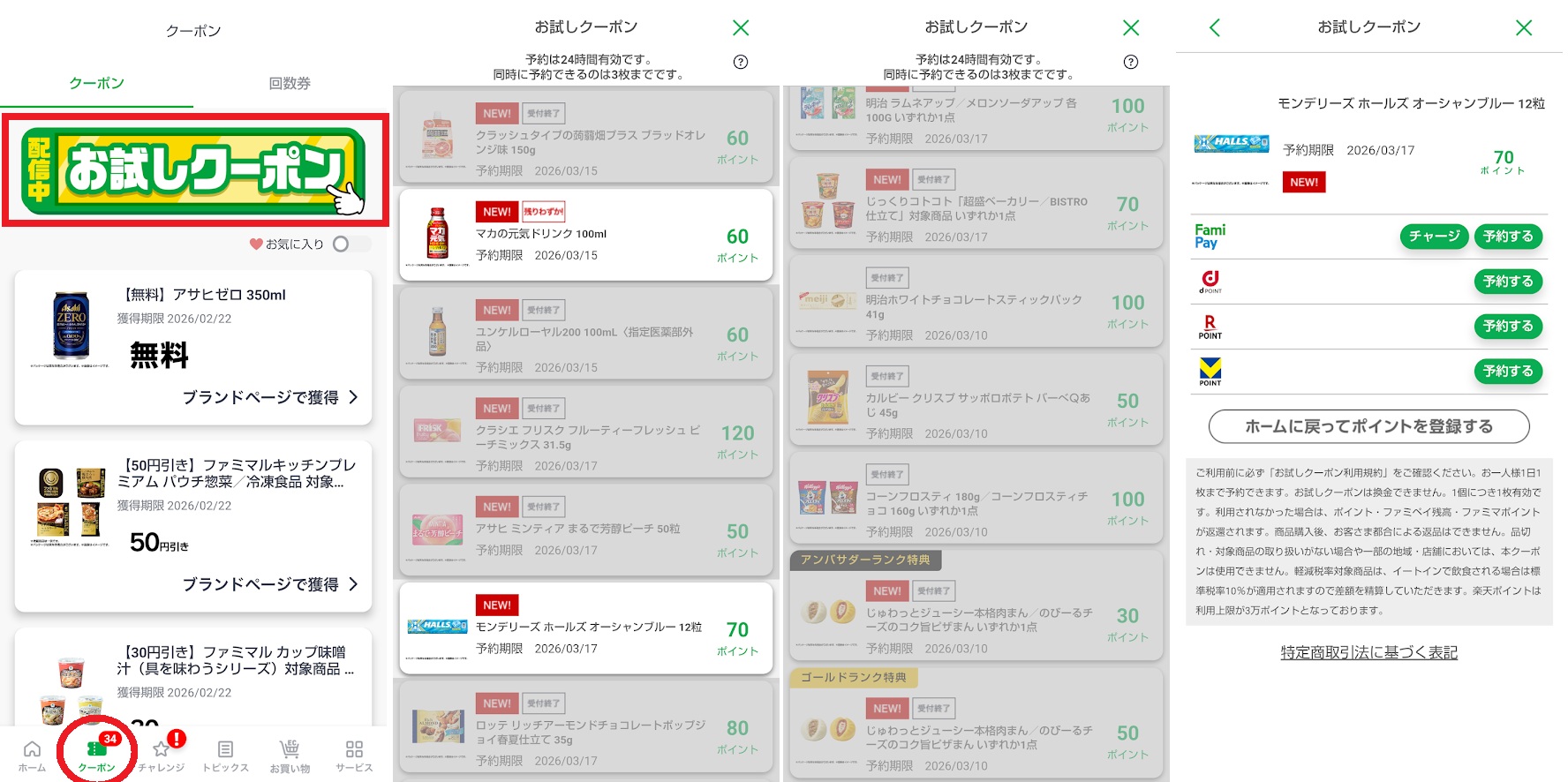 また、ファミリーマートの「ファミペイ」アプリ内では、およそ半額のポイント数で交換できる「お試しクーポン」を定期的に配信することが多いのだが、今回、PayPayポイントからVポイントに交換、そこから「お試しクーポン」を取得できる可能性もあることを伝えておく。