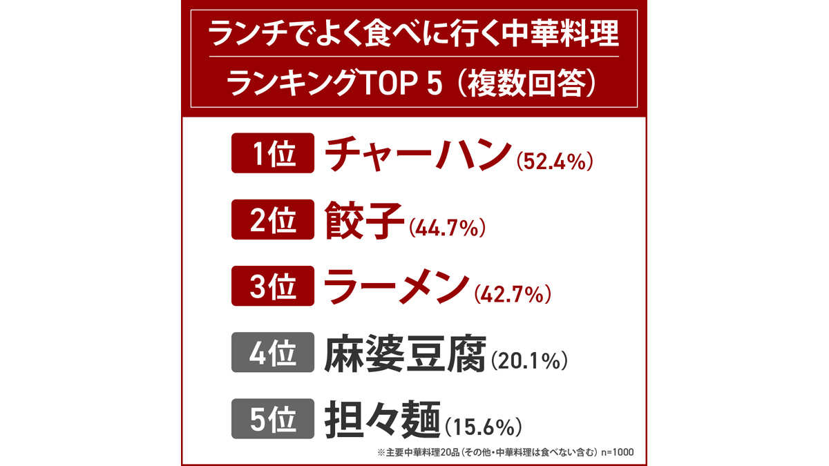 ■ランチでよく食べに行く中華料理、1位「チャーハン」2位「餃子」3位「ラーメン」