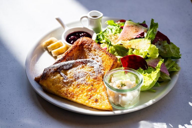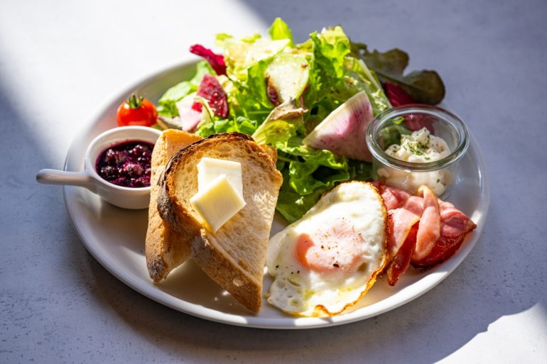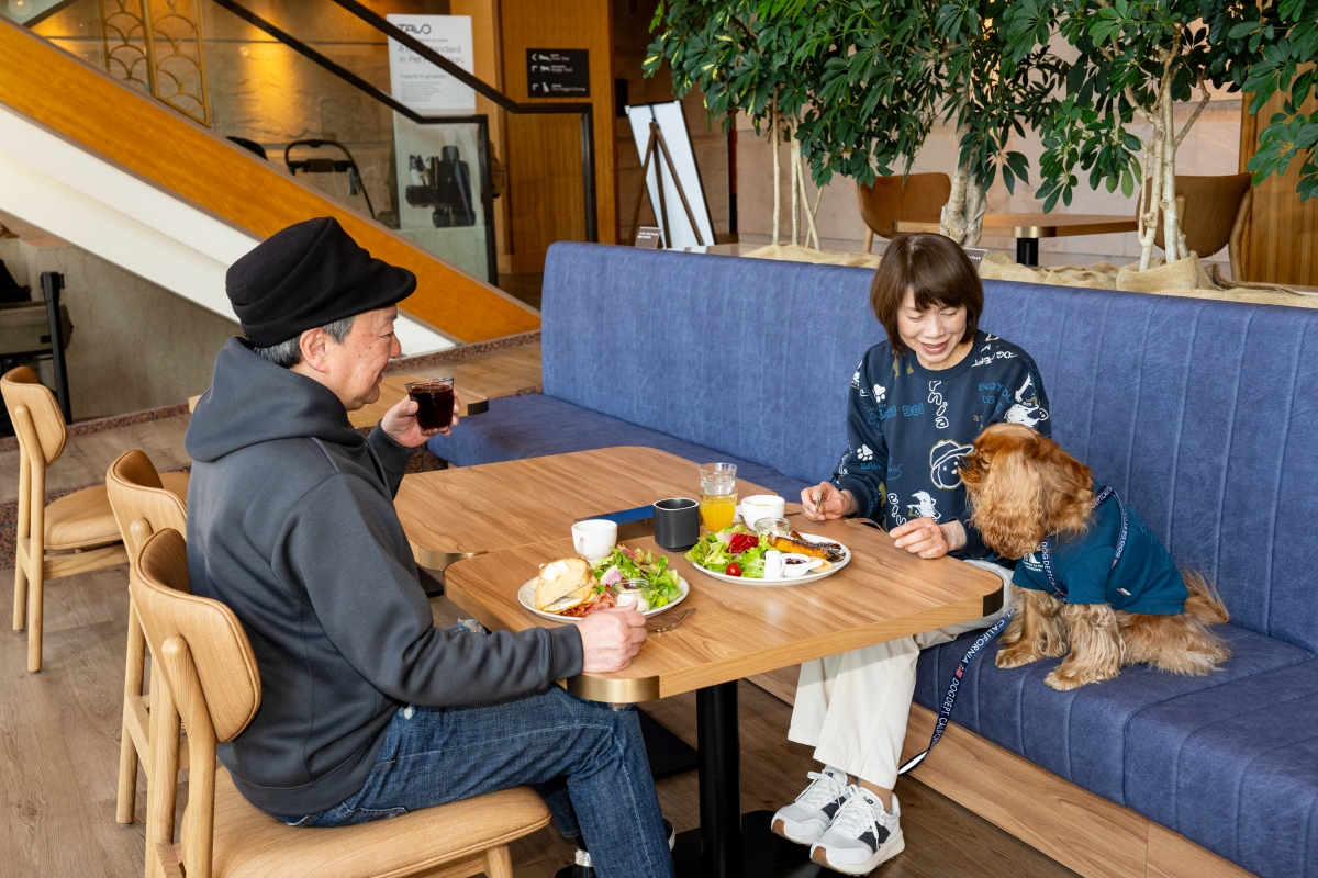 翌朝は一番にアーモンドをドッグパークで遊ばせ、ラウンジでの朝食へ。メニューは奥久慈卵のフレンチトースト、アバカド&サーモンのオープンサンド、ベーコンエッグ&トースト、ハム&チーズサンド、ツナメルトンサンドの5種類で、その中から、ボクたちはフレンチトーストとベーコンエッグ&トーストを選択(チェックイン時に指定します)。新鮮野菜たっぷりで、すべてが手抜き一切なし。美味しく、幸せな朝食をいただくことができました。フリーサービスのミネストローネの美味しさにも感動し、おかわりしたぐらいです。※飲み物はフリーサービス。