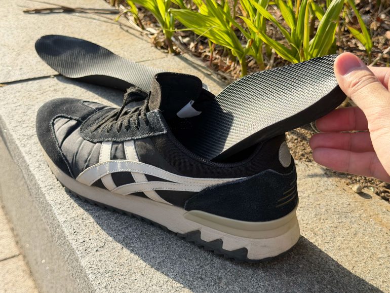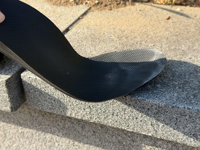 そんな状態で長距離を歩いたところ、そして「ASHITO INSOLE for Medical」の凹凸のテクスチャで靴下と足裏に摩擦が生じ、若干の痛みを覚えた(血が出るほどではない)。ただし、そこであらためて靴紐を結んでからは解消した。もし本記事を読んで試す方がいるなら、筆者と同じ轍は踏まないようにしていただきたい。