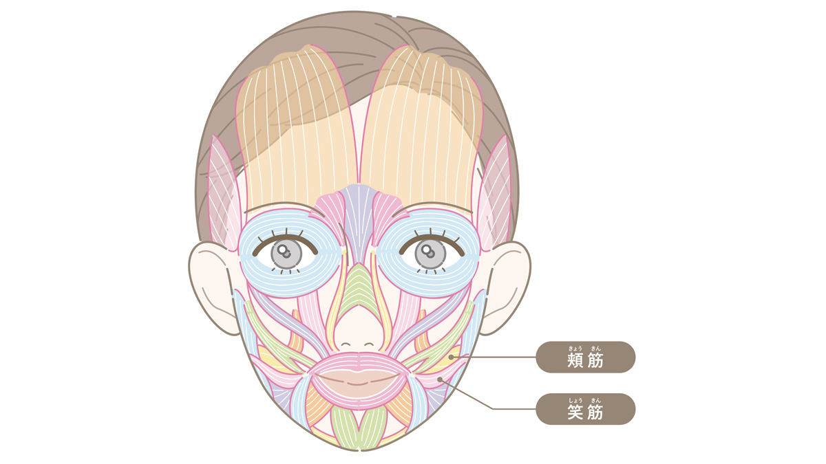 この製品が着目したのは、表情筋のインナーマッスルである「頬筋(きょうきん)」や「笑筋(しょうきん)」。