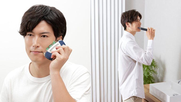 『オーラルリフト』は、歯磨き習慣の中で深層表情筋にアプローチする歯ブラシ型美顔器。歯磨き時間をそのままリフトケア*に変えてしまう、斬新なアプローチだ。