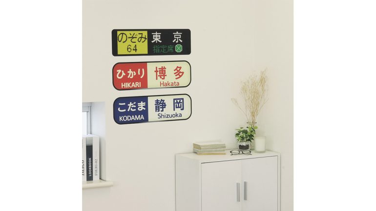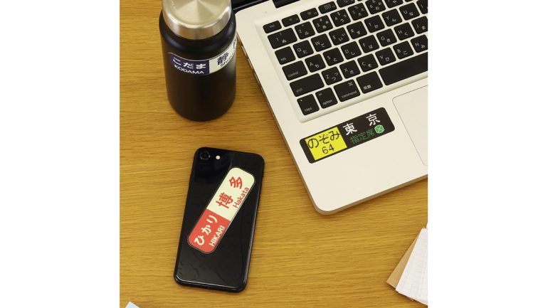 今回の3デザインは、「ひかり」と「こだま」はすでに引退している新幹線車両の方向幕のレトロな風合いを表現して、「のぞみ」は電光板の光のグレア(にじみ)を表現して実際の見え方に忠実になるように作られている。ステッカーのサイズは、壁などに飾っても存在感のある55cm幅とスマートフォンやノートなどの小物にも気軽に貼れる9cm幅の2種類を展開しており、貼りたい場所や用途に合わせて選べる。なお接着面は、貼ってはがせる弱粘着仕様。何度か貼り直すことができて壁紙も痛めにくい仕様になっている。