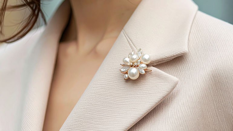 なので、付けるとしたら花ではなく、スタイリッシュで現代風の感覚なものをおすすめしたいです。であれば、ネックレスとブローチ等を組み合わせたりしても、素敵ですね。