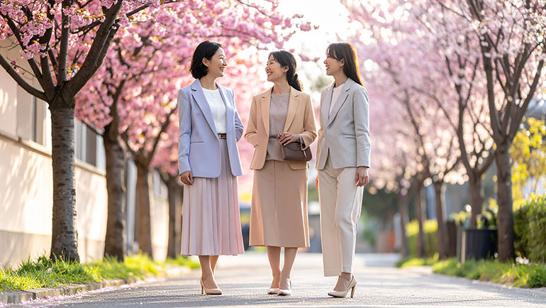 五十嵐さん(以下、五十嵐):まず、卒業式と入学式は一緒くたにされがちですが、分けて考えるといいです。卒業式はお別れの席なのでやや暗めの色合いとし、新たなご縁が始まる入学式はちょっと明るめであるか、淡い色を選びましょう。
