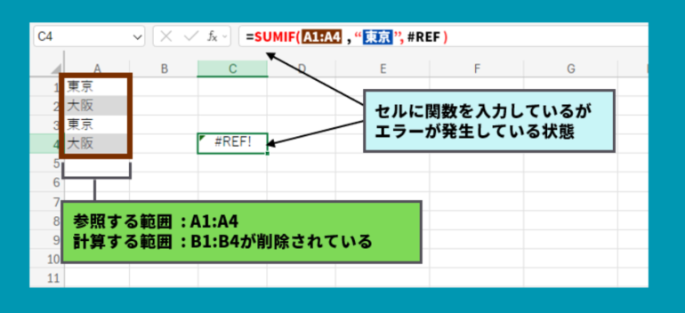 ◾️SUMIF関数で『#REF!』エラーが起きる例