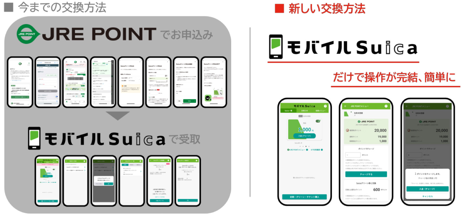 モバイルSuicaのリニューアルで、JRE POINTの保有数の確認、ポイントからモバイルSuicaにチャージ、ポイントでSuicaグリーン券の購入ができるようになったので、JRE POINTが貯まっている方はモバイルSuicaアプリをアップデートしてぜひお試しください。