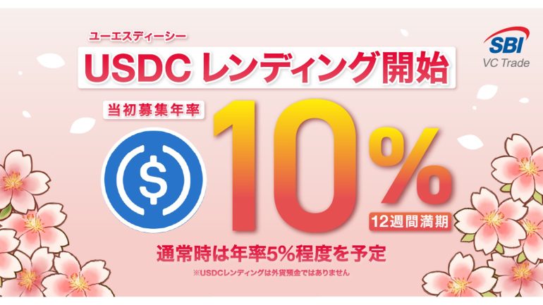 SBIホールディングスの連結子会社として暗号資産交換業を展開するSBI VCトレードは、2026年3月19日より、「USDCレンディング」サービスを国内のライセンス業者で初めて開始した。