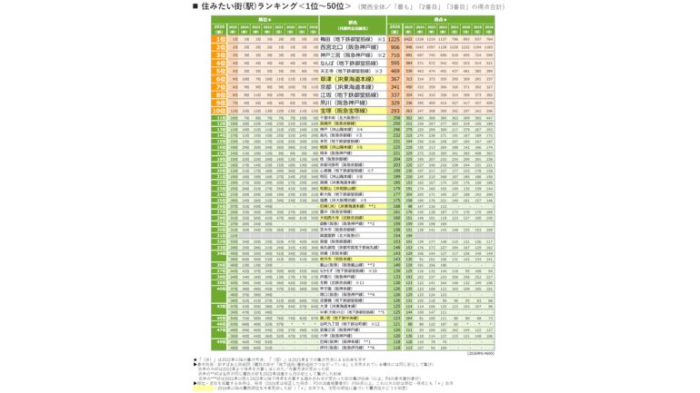 このほか、11位以下、50位圏内では「高槻市」「姫路」「和歌山」「尼崎〈JR〉」「大和西大寺」「枚方市」「森ノ宮」が過去最高位を更新した。