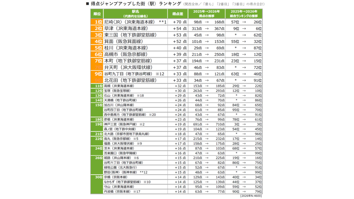 [関西]得点ジャンプアップした街(駅)ランキング