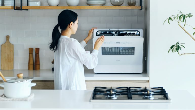 自動給水式を採用したシロカの食器洗い乾燥機は、2022年の発売以降、水道工事不要で購入したその日からすぐに使用できる点や、バケツから自動で水をくみ上げることで、自分で給水する手間いらずの手軽さなどで好評を博している製品。家庭のキッチン事情に合わせて、分岐水栓につないでも使用できる“2wayタイプ”であることも特徴だ。