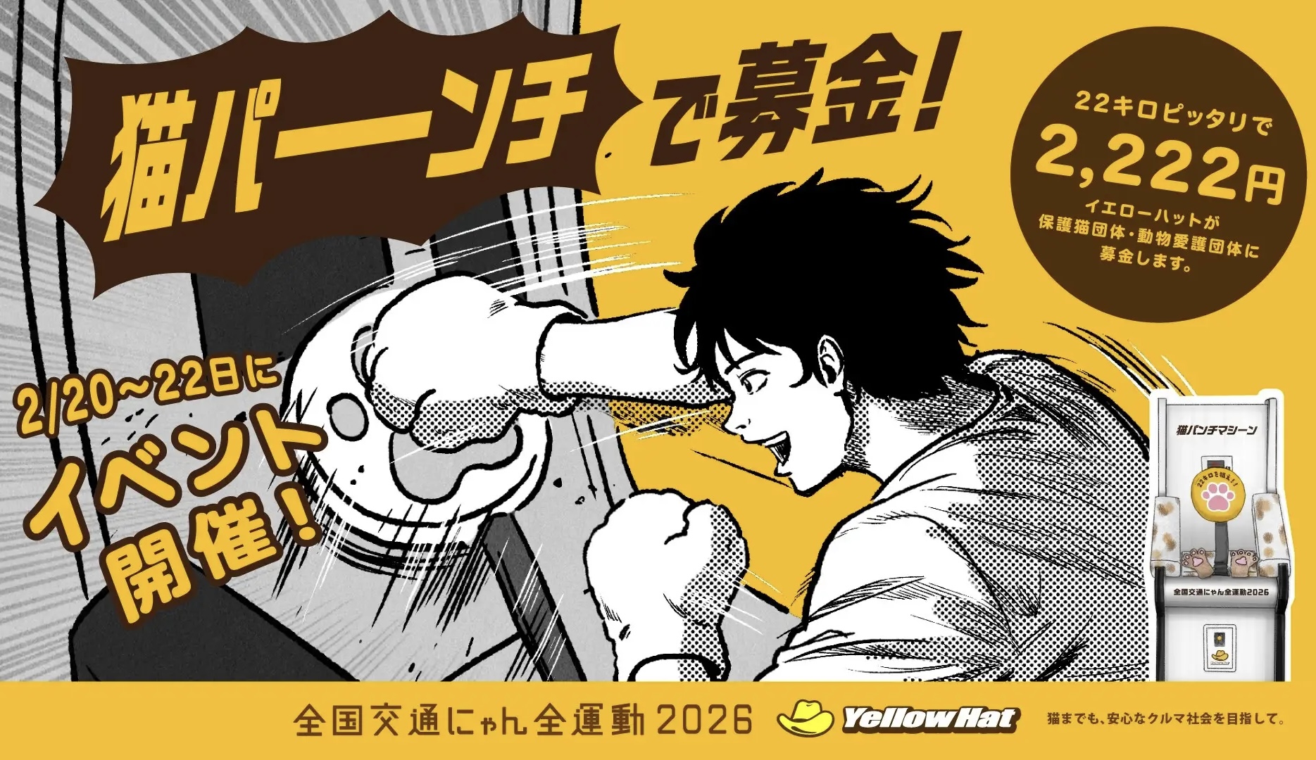 「2024年からは、事故に遭うかもしれない猫自体を減らすことに貢献すべく、「猫パンチで募金」や「保護猫譲渡会イエローキャット」を実施しています」