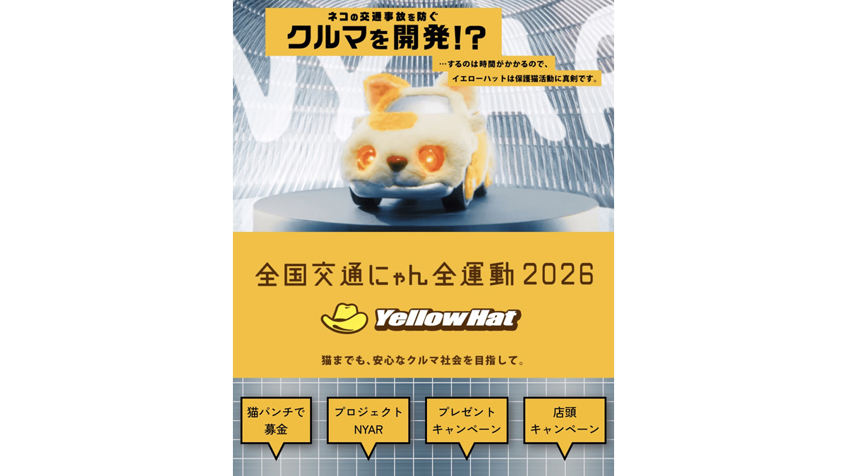 「弊社は通学時に児童がかぶる「黄色い帽子」が社名の由来となっており、カー用品販売・メンテナンスを通じて「交通安全」を最優先事項として掲げております。その中で、毎年多くの猫が交通事故に遭っているという悲しい現実を知り、「人間だけでなく、猫の安全も守りたい」という想いから、2月22日の「猫の日」に併せて「全国交通にゃん全運動」をスタートいたしました」