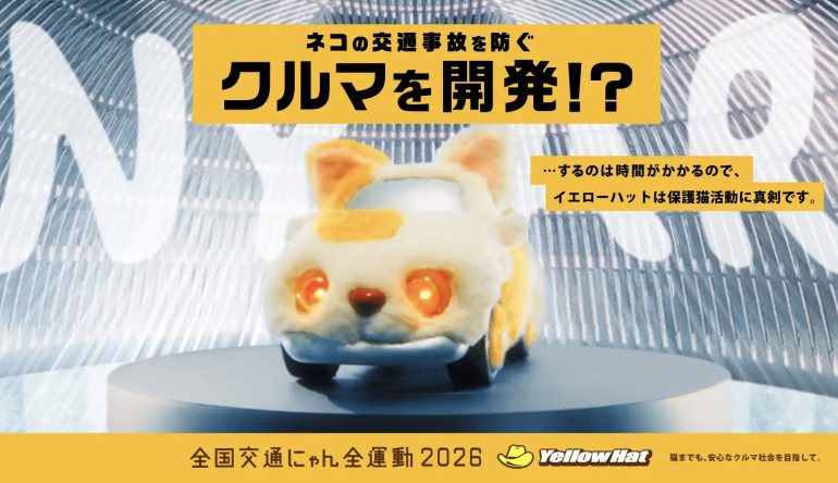 猫好きなら誰もが歓喜する未来の自動車「NYAR(ニャー)」の開発ストーリー動画を制作したのは、カー用品専門店「イエローハット」。