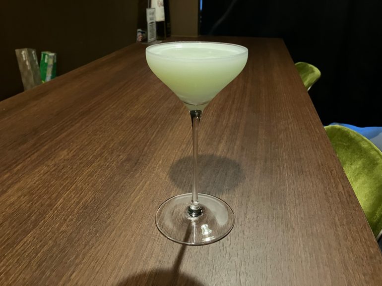 次に、ウヌ・マントを用いた「WARTY HOPPER(ワーティ・ホッパー)」(同1300円)に挑戦。バーで定番のカクテル「グラスホッパー」を新解釈したもので、ミントリキュールに、カカオリキュール、クリーム、バニラ、甘酒をかけ合わせている。デザートカクテルでありながら、さわやかなミントの香りがアクセントになっていて飲みやすい。