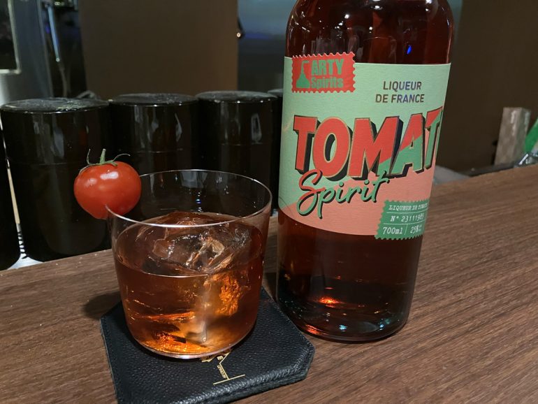 1つ目は「TOMATO SPIRIT(トマト・スピリット)」(アルコール度数25%)。原料に乾燥トマトを使用し、リアルな青味や複雑なトマトの香りを表現している。