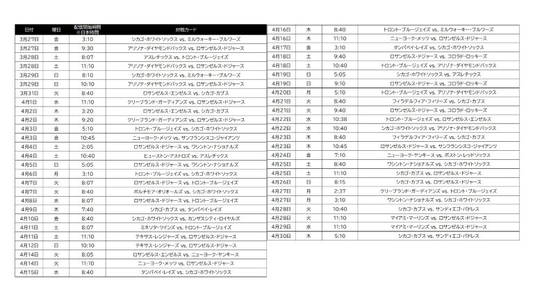 また、3月31日(火)のロサンゼルス・エンゼルス対シカゴ・カブスでは菊池雄星選手・鈴木誠也選手・今永昇太選手らの日本人選手の活躍に注目が集まる。