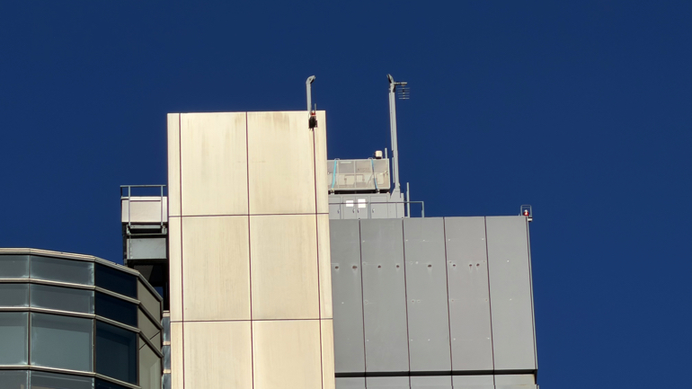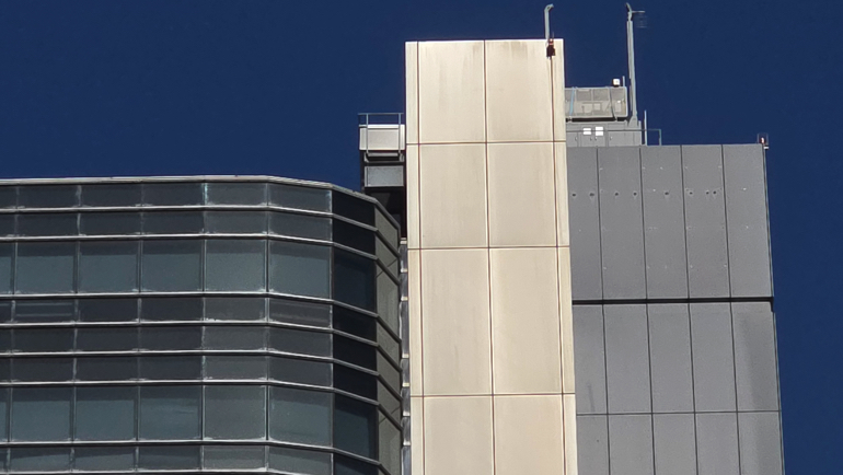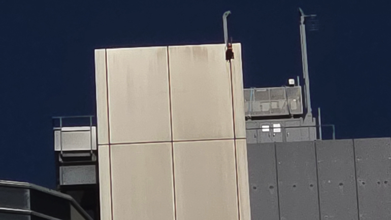 30倍ズームになると手持ちの撮影では狙い通りの画角の維持が難しくなってきます。厳しい撮影環境になりますが、iPhone 17 Proは緩めながらピントを合わせています。一方、Samsung Galaxy S26+は精細感がやや緩く、若干ぼやけた感じになっています。