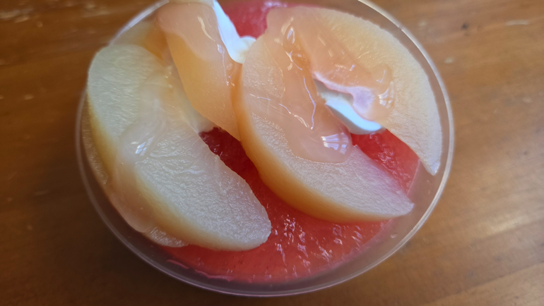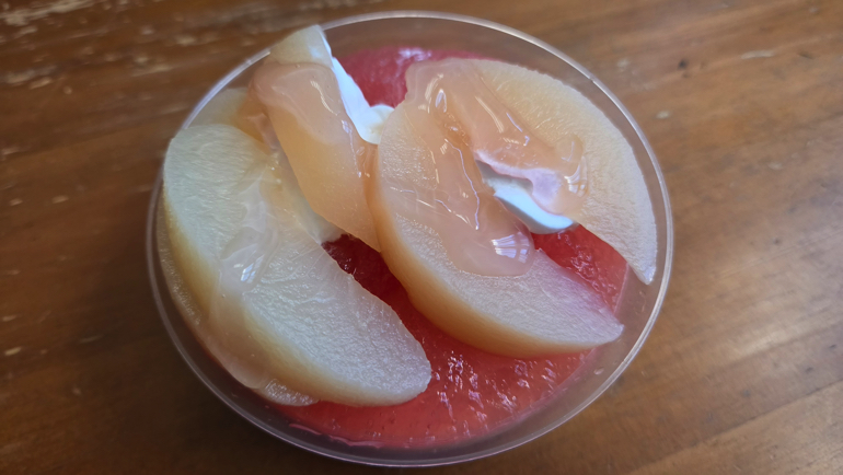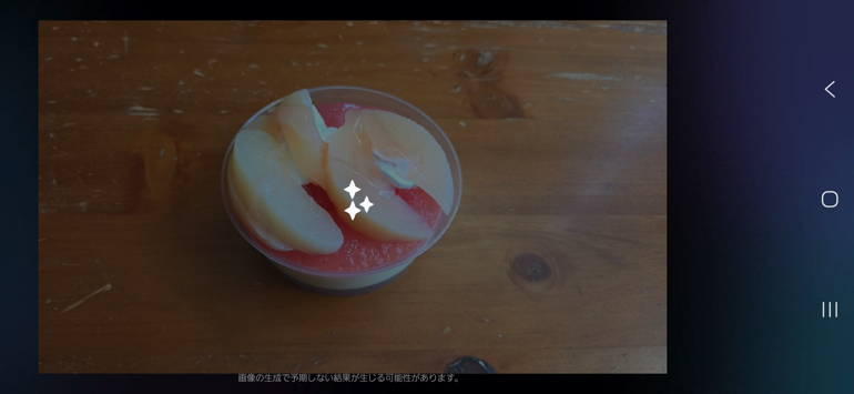 ちなみに、Samsung Galaxy S26+の食事モードを試したところ、彩度を強めつつもボカしが効果的になった印象。ゼリーのシズル感も効果的で、素直に「美味しそう」と思う写真が撮れました。