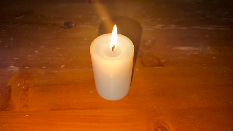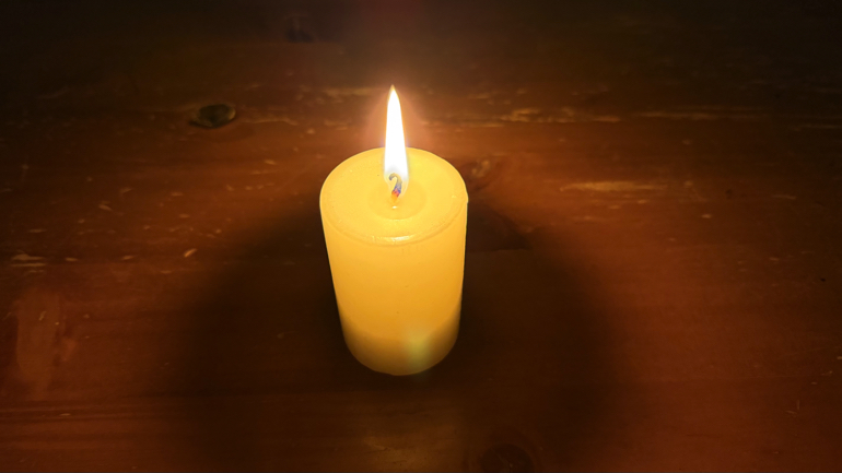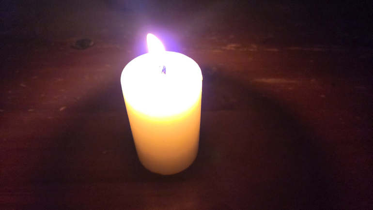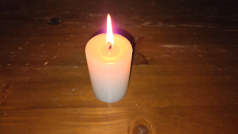 暗所撮影のテストは、日が落ちた室内でろうそくに火を灯して撮影してみました。
