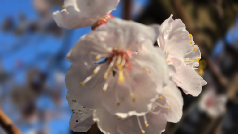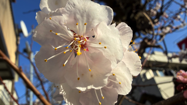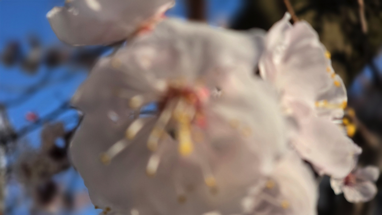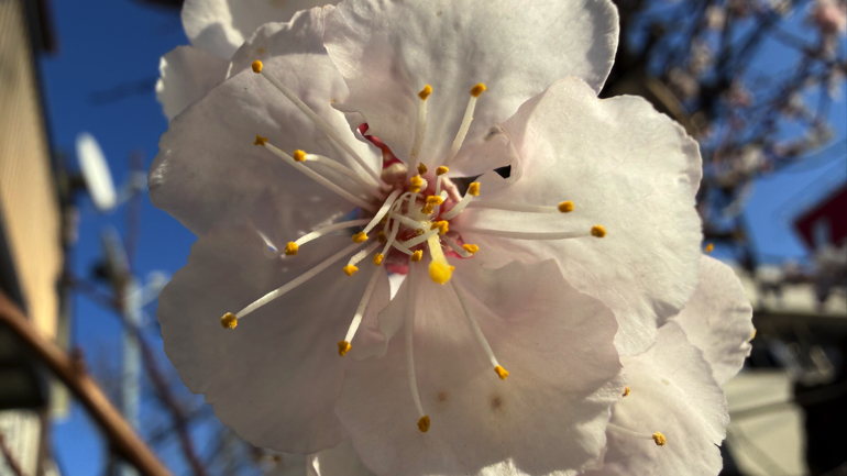 さらに花から3〜4cmくらいの距離までレンズを近づけて撮影したところ、Samsung Galaxy S26+は、ピントを花弁に合わせることができませんでした。一方で、iPhone 17 Proはしっかりピントを合わせています。