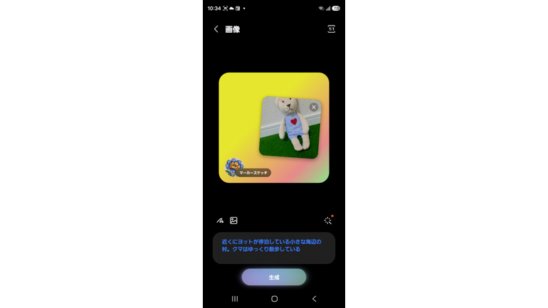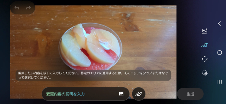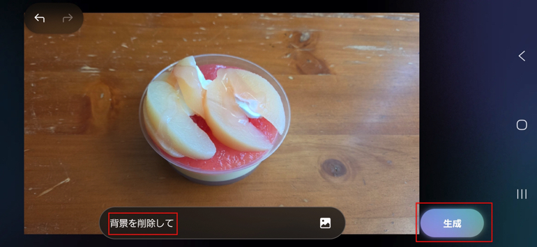 試しに「背景を削除して」と文字入力して、「生成」をタップします。