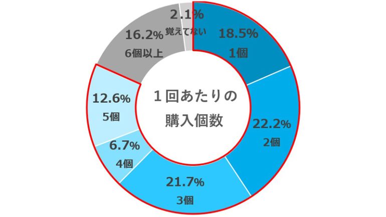 また、1回あたりの購入個数については、1~5個の回答が全体の81.7%に上り、気軽に楽しまれていることがわかった。
