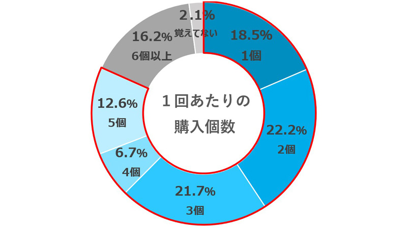また、1回あたりの購入個数については、1~5個の回答が全体の81.7%に上り、気軽に楽しまれていることがわかった。