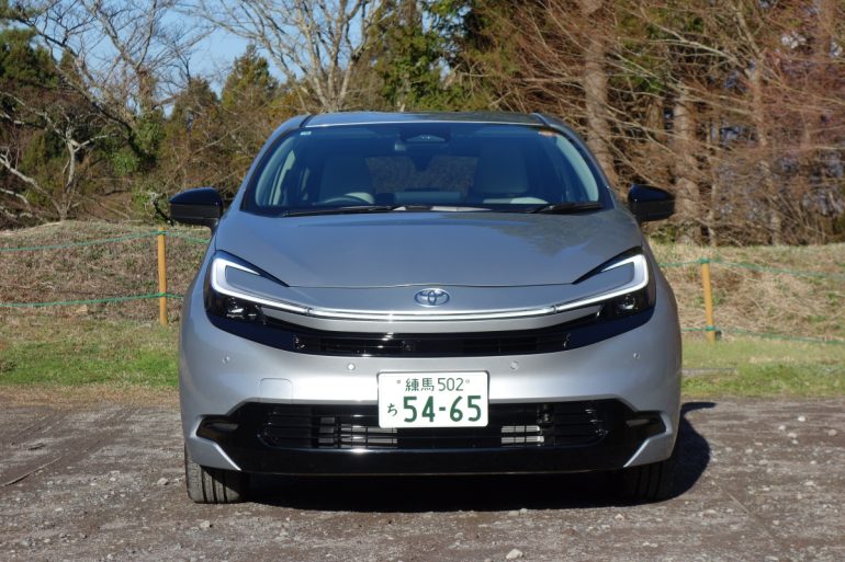 およそ300kmの一般道、高速道路、山道を含む試乗でちょっと気になったのは、プリウスに比べ、低速走行時のエンジン始動の有無によるノイズと振動レベルの差、高速走行でACC+レーンキープを設定しているときのステアリングの落ち着き感不足、そして、左斜め後方の視界に、後にキックアップした大面積のリヤドアの黒い樹脂の内張が入り、一瞬、黒いクルマが左斜め後方にいるように錯覚してしまいがちな点である。