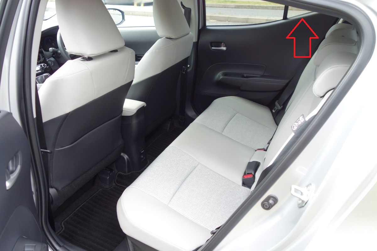 およそ300kmの一般道、高速道路、山道を含む試乗でちょっと気になったのは、プリウスに比べ、低速走行時のエンジン始動の有無によるノイズと振動レベルの差、高速走行でACC+レーンキープを設定しているときのステアリングの落ち着き感不足、そして、左斜め後方の視界に、後にキックアップした大面積のリヤドアの黒い樹脂の内張が入り、一瞬、黒いクルマが左斜め後方にいるように錯覚してしまいがちな点である。