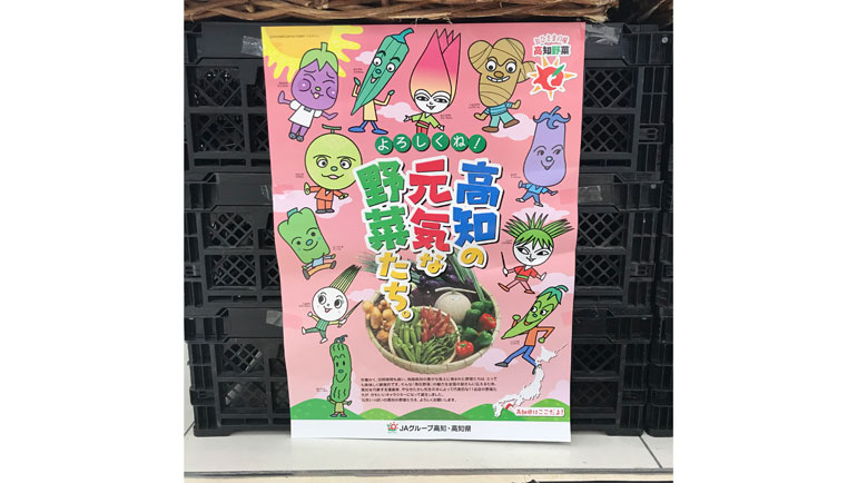 野菜の特徴をとらえたユニークなキャラが11体もいて、華やかです。これらは高知県のほか、県下のJAグループなど複数の団体が共同制作したものです。単に商品作物そのものだけでなく、地域全体のPRをねらったものも多いですね」
