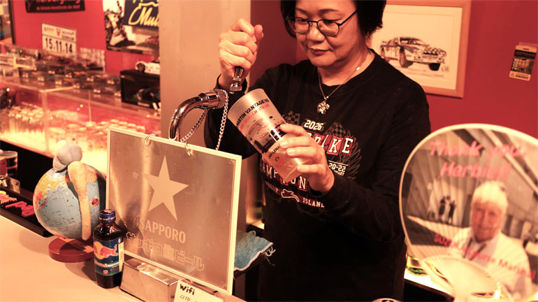 「うちは、ドリンクとかそんなに凝ってないんですよ。とりあえずビールで、サッポロビールが一番飲まれています。代わりに、レースを観戦しながら、趣味の合うお客さん同士が語り合える雰囲気づくりを大切にしたいですね」