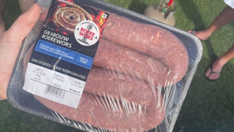ちなみに、実際のブルボスはこのような形で長く渦を巻いたソーセージだ。南アフリカでは家族や友人と過ごす際にBraai(ブラーイ)という南アフリカ式BBQをするのだが、その場で必ず見るほど定番の一品である。