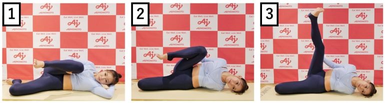 〇横になって行う前もものストレッチ