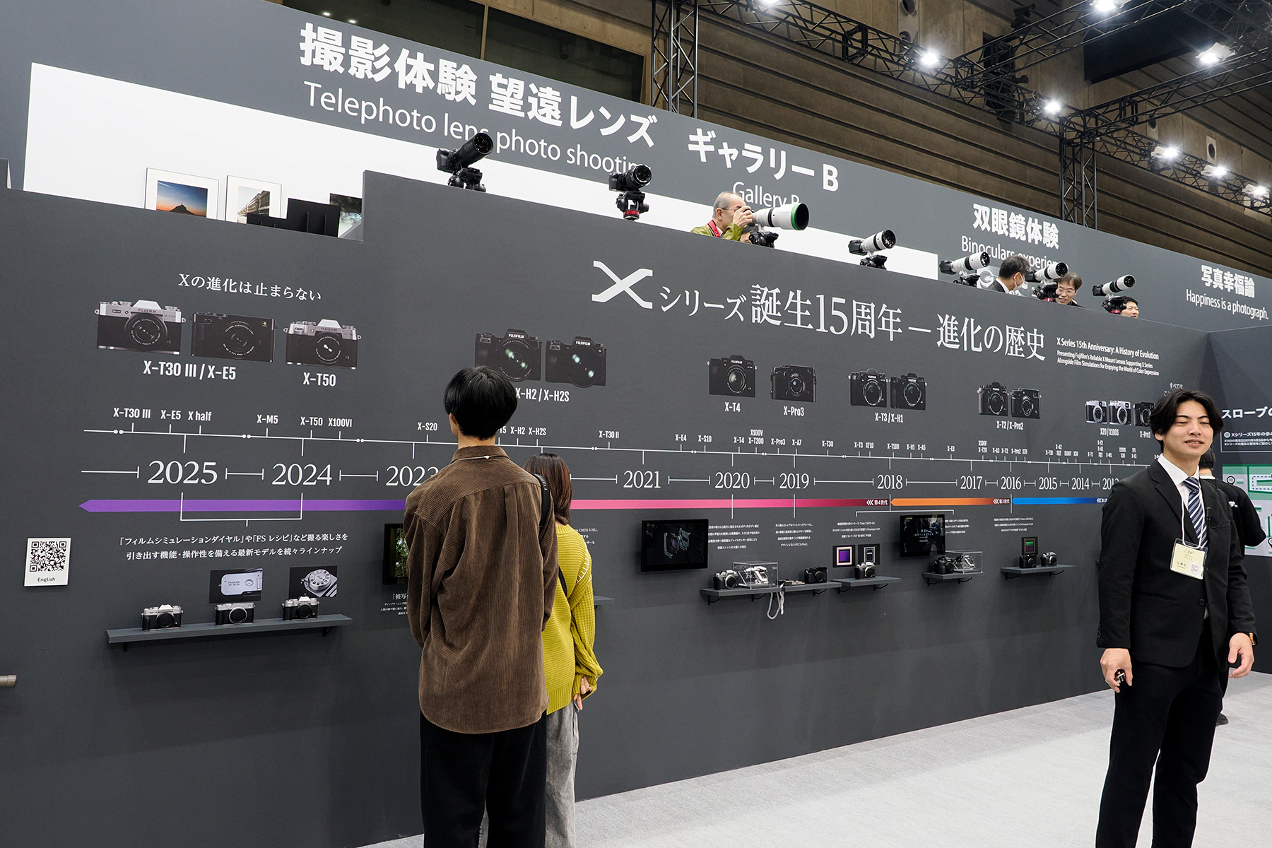 最新の「X-T30 III」や、遊び心溢れるインスタックス(チェキ)の体験コーナーも充実。スペック追求だけではない、カメラを通じた「表現の喜び」を再確認させてくれる。また1億画素を超えるラージフォーマットの「GFX」シリーズもボディとレンズが充実のラインナップとなり盤石の布陣を見せてくれた。