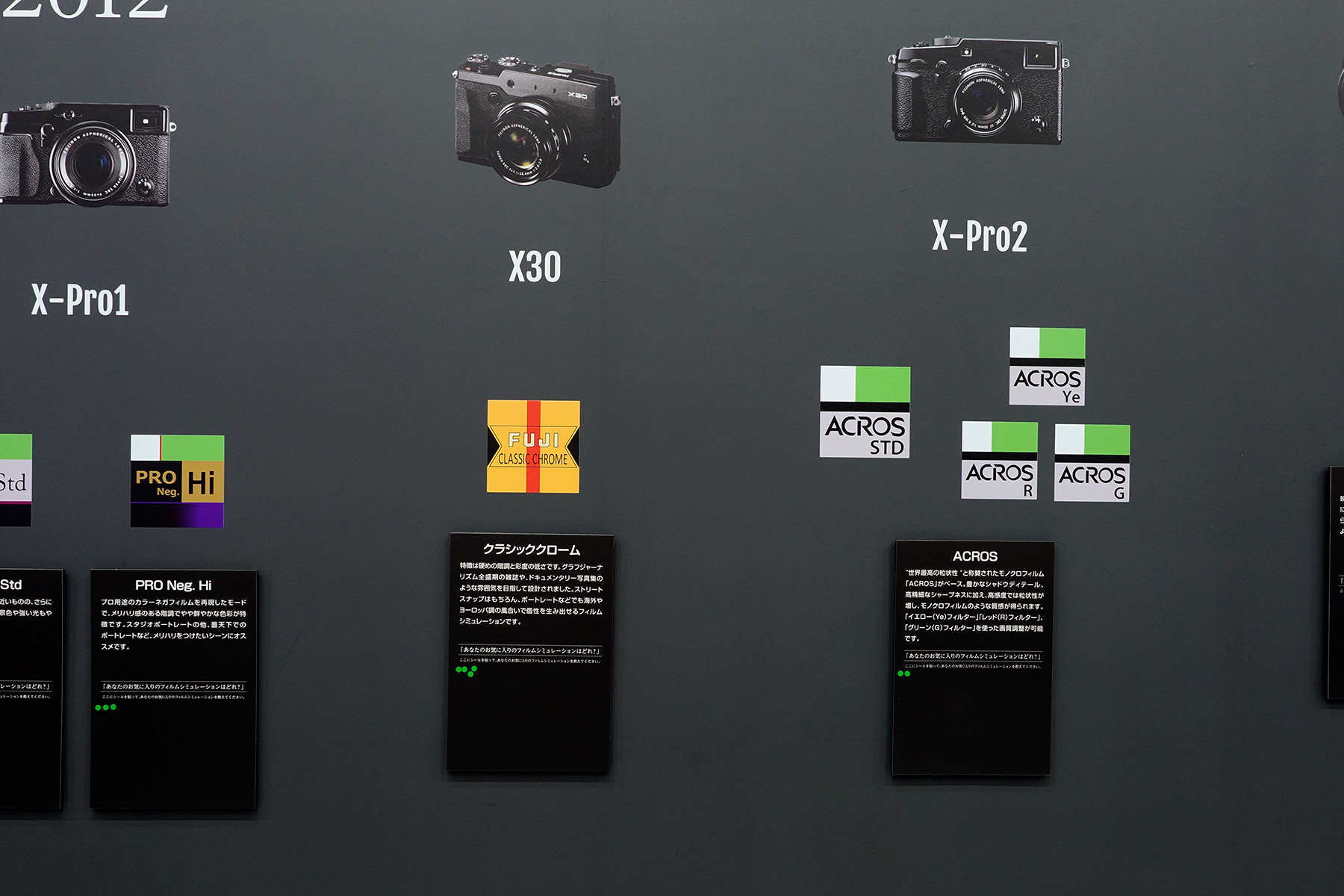 Xシリーズ15周年を祝うパネル展示は、同社の歩みそのもの。圧巻は、来場者が参加する「フィルムシミュレーション人気投票」だ。私も愛着のある「クラシッククローム」に一票を投じたが、自分の好みが可視化される体験はファンにはたまらない。