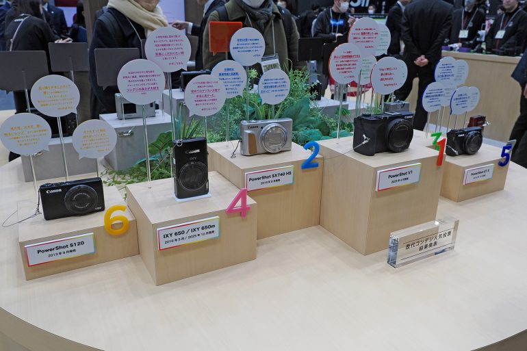 Canonブースでは、歴代コンパクトデジカメの人気投票結果が発表され、改めて「PowerShot」シリーズの根強い人気が浮き彫りになった。