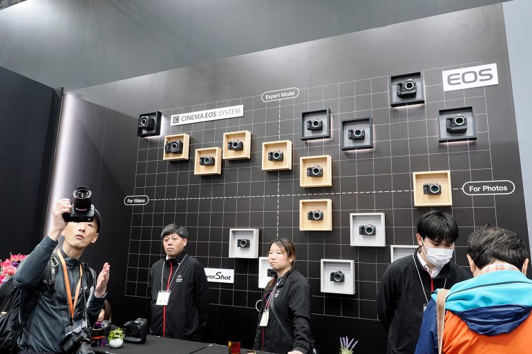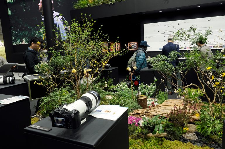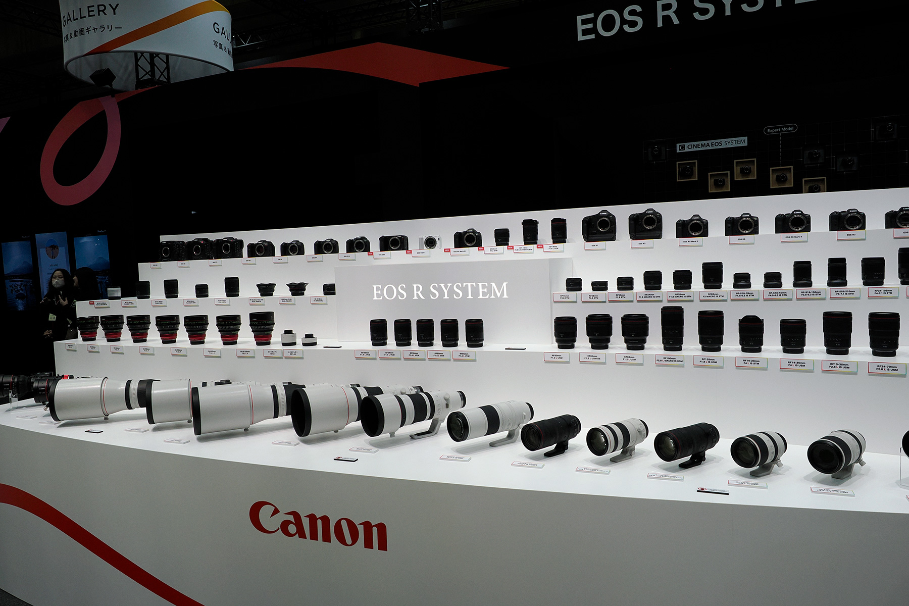 メインとなるEOS Rシステムは「EOS R6 MarkIII」をコアにして、仕事も趣味もこなせる隙のない展開、最新レンズ「RF14mm F1.4 L VCM」、「RF7-14mm F2.8-3.5 L FISHEYE STM」も展示され、Canonだけで完結できる世界を構築していた。