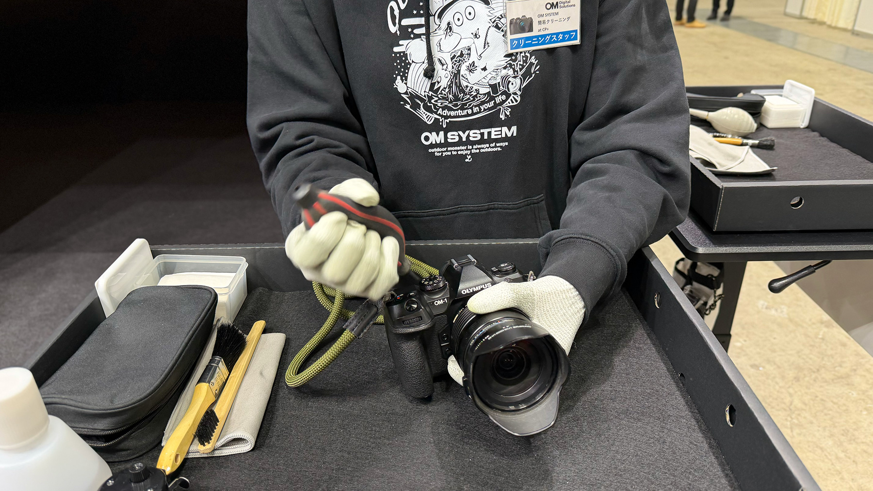 ブース内にリアルな「森」を再現し、隠れた小動物やモニターの野鳥を探して撮るスタイルは、まさに実戦形式。注目の「OM-3 ASTRO」や「ED 50-200mm F2.8 IS PRO」は、フィールドに持ち出してこそ真価を発揮する機材だ。今回、初登場の簡易クリーニングコーナーも体験。過酷な環境で使い倒されることを想定した、メーカーの「機材への責任感」が伝わる、信頼感抜群の展示だった。