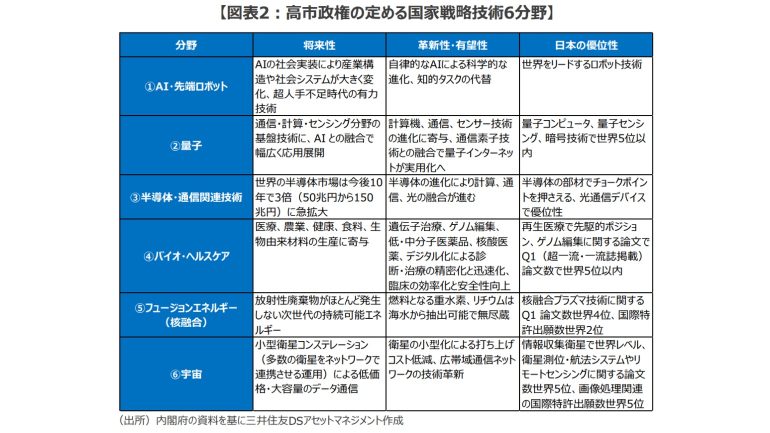 という「国家戦略技術6分野」にターゲットを絞り込み、成長戦略が実行されることになる(図表2)。