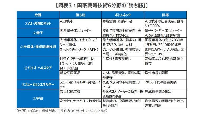 それでは、「国家戦略技術6分野」の「勝ち筋」について見ていく。