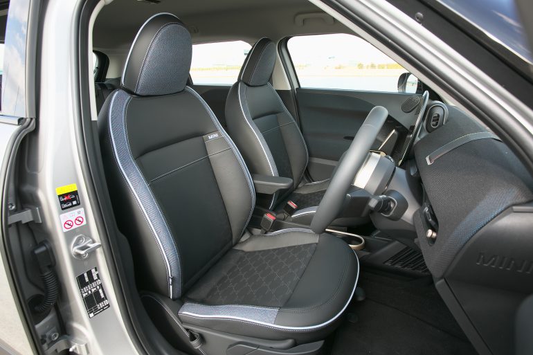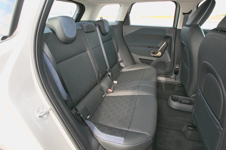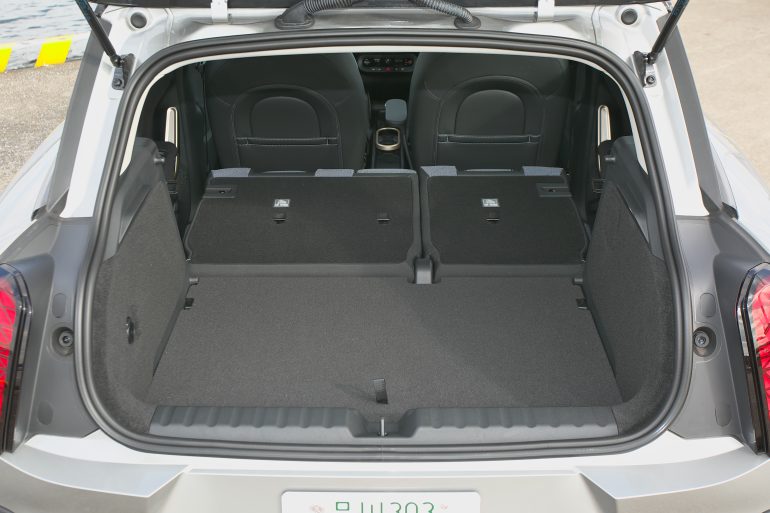 このように、エンジンMINIとEV MINIの良い部分を取り入れてクルマづくりが行われている。居住空間もリアシートはやや低めの着座で、頭上のスペースを確保。足元は中央のトンネルが大きく張り出しているので、着座は左右1名ずつ。左右1人掛けが快適定員だ。車体後方の荷室スペースも床板の下にはサブトランクスペースが設けられており、この空間に充電ケーブルを収納することができた。