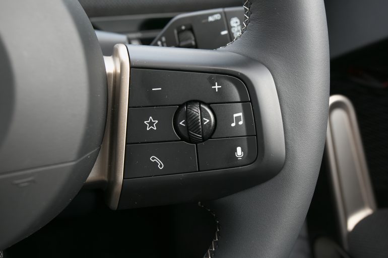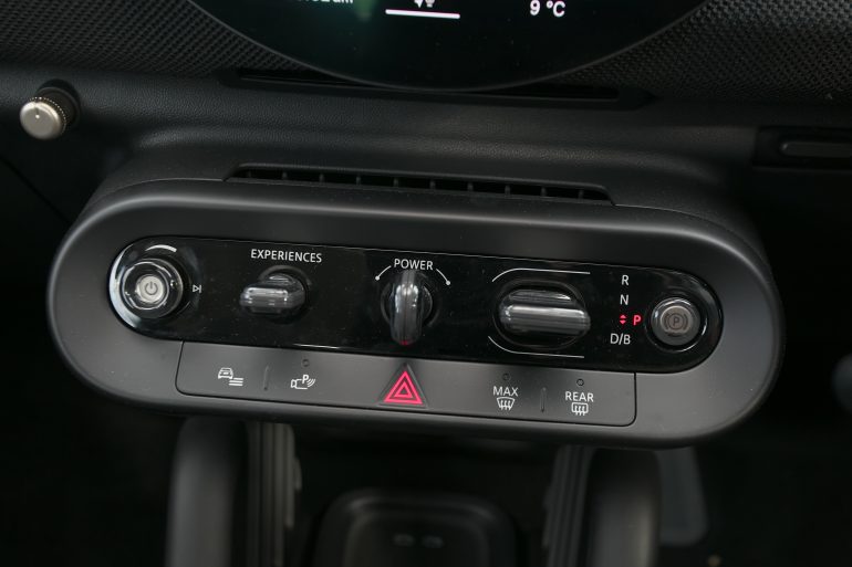 さらにEVらしい特徴としては、コラムから左側にのみ設けられている「ブースト」レバーだ。これはフォーミュラEの「アタックチャージ」に似ており、レバーを引いてから一定の秒数だけ、急速放電が行われ、加速性能が向上するという機能なのだ。さらにBレンジを選択すれば1ペダルとして使える。